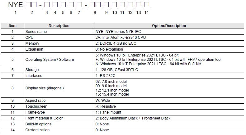 *1. FHV7 Software is installed only on NYE versions. NYE[][]-[][]F[][]